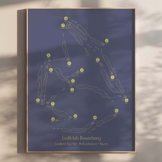 Und wenn du eine Erinnerung an die tollen Golfplätze für zuhause haben willst, dann haben wir für dich exklusive, dekorative Karten in drei unterschiedlichen Designs zum Aufhängen - Zum Beispiel vom Golfclub Beuerberg.