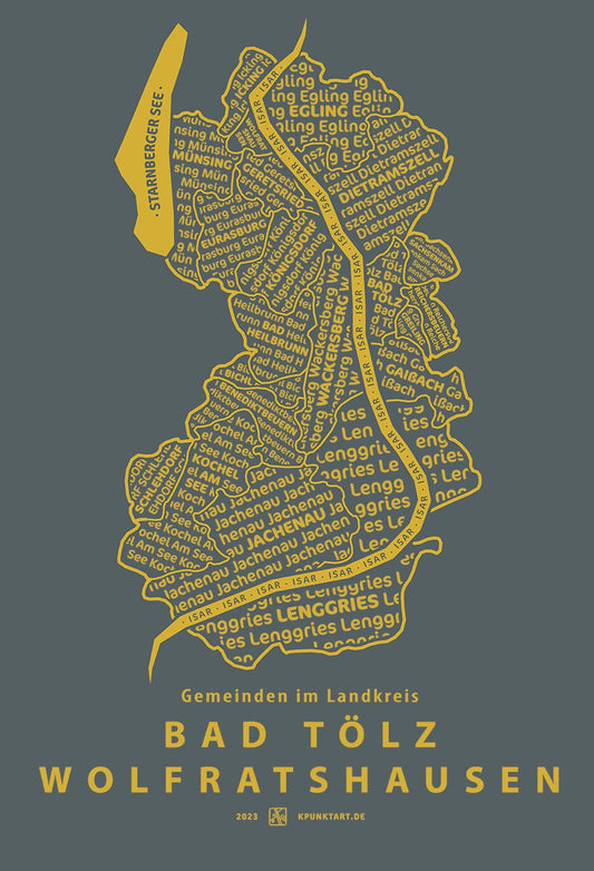 Landkreis Bad Tölz-Wolfratshausen, Siebdruck 50x40 cm