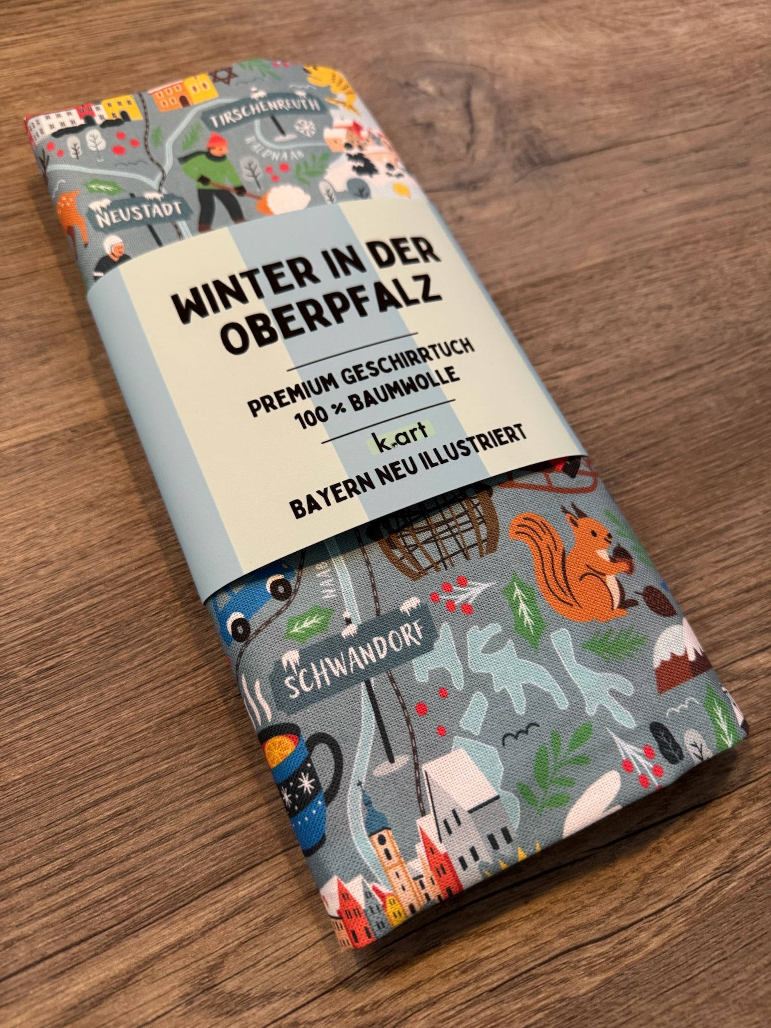 Geschirrtuch Winter in der Oberpfalz – hochwertiges Baumwolltuch mit Kartenmotiv